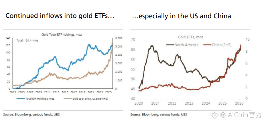 ○ 对比来看,2025年中国黄金ETF全年增持量仅为324万盎司,创当时历史纪录。这意味着,当前中国投资者的买入强度可能是去年的三倍以上。中国已成为全球黄金ETF资金流入的最主要贡献力量。