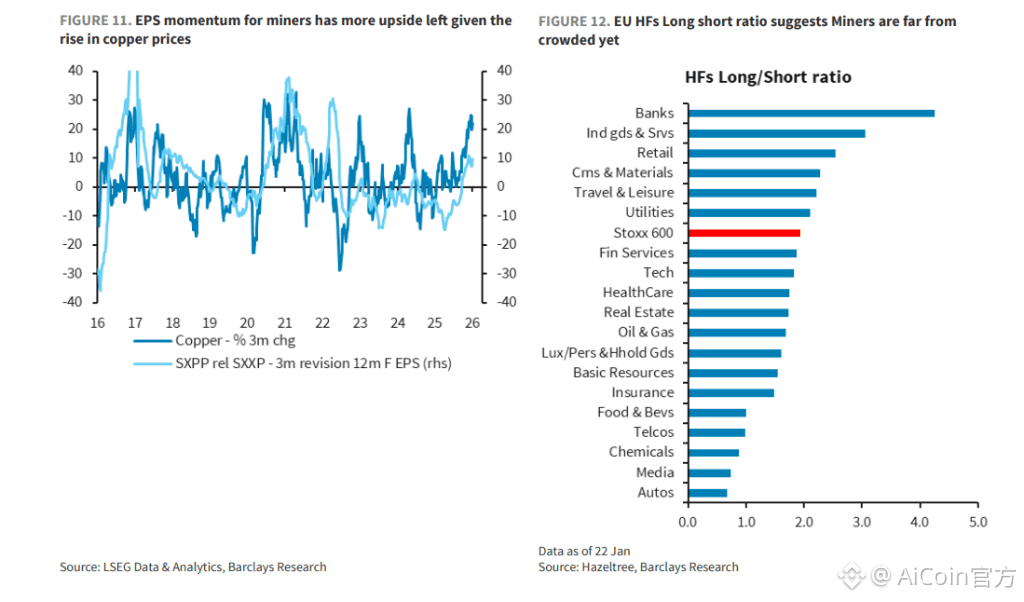 ○ 巴克莱等银行提示,在黄金牛市周期中,黄金矿业股往往具备更大的价格弹性。目前,矿企的股价涨幅可能尚未完全反映金价高企带来的未来每股收益(EPS)增长预期。一旦金价结束调整并重拾升势,矿业股有望出现显著的报复性补涨行情,为投资者提供了除实物黄金和ETF之外的另一种高贝塔投资选择。