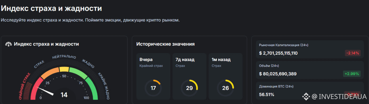 Fear & Greed: 14 — экстремальный страх
