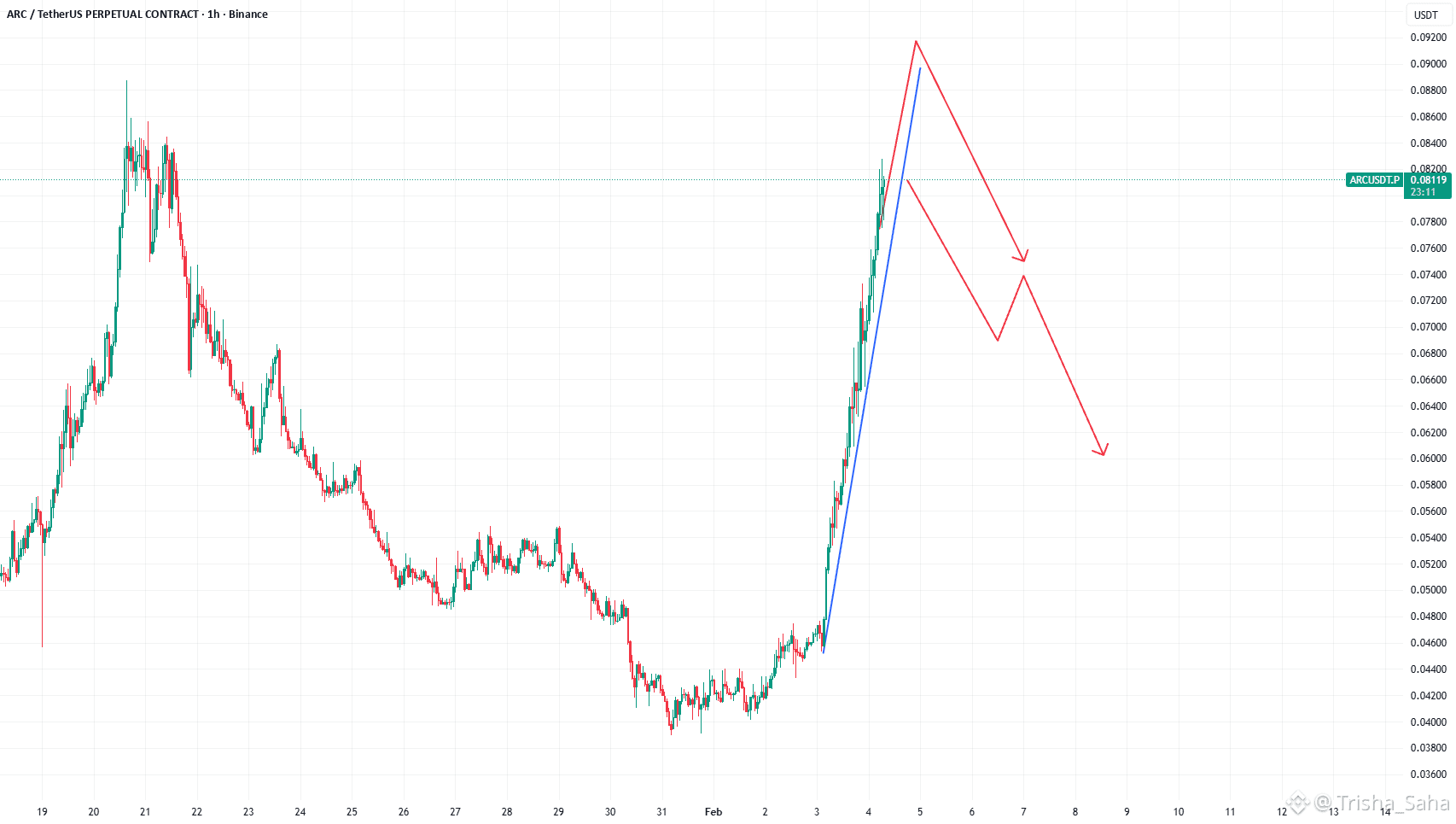 ARC (AI Rig Complex) has had a parabolic price increase of 100% in the last 48 hours and continues to display high transaction/frequency trading activity.