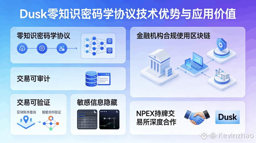 Dusk的核心优势在于它把“合规”和“隐私”这两个看似矛盾的需求巧妙地统一了起来。大多数公链要么完全开放透明(如以太坊),难以满足金融监管对数据保密的要求;要么牺牲去中心化来换取控制力(如某些联盟链)。而Dusk采用自研的零知识密码学协议,在保证交易可审计、可验证的同时,隐藏敏感信息,让金融机构既能拥抱区块链效率,又不触碰合规红线,这正是NPEX这样持牌交易所愿意深度合作的关键原因。