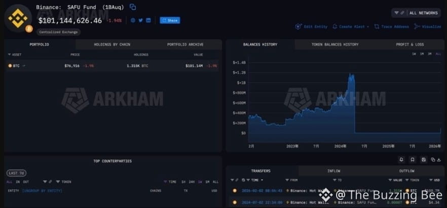 On February 2, on chain data confirmed that the Binance SAFU Fund address received 1,315 BTC worth $100.7 million.