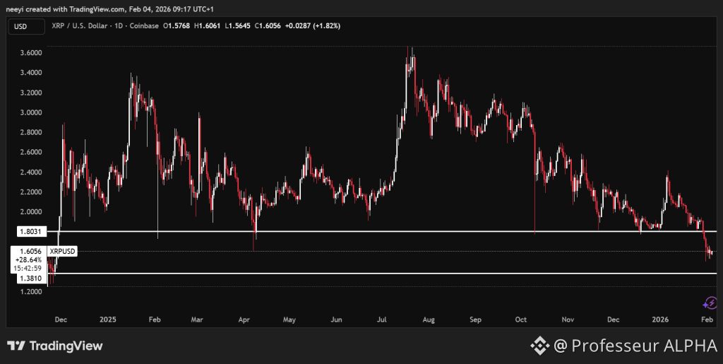 Le 30 janvier a marqué un tournant critique. En tombant sous la zone des 1,8 $, un support qui tenait bon depuis 2024, le XRP a vu son accélération baissière s'accentuer.