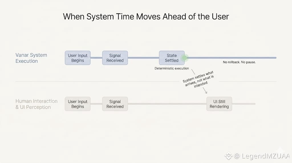 In one of the Vanar apps I was watching, three user flows touched the same feature within a breath, open, exit, reopen, before the first application execution path finished closing. No warning anywhere. Consumer UX stayed smooth. Product infrastructure underneath showed two live branches and one already cooling.