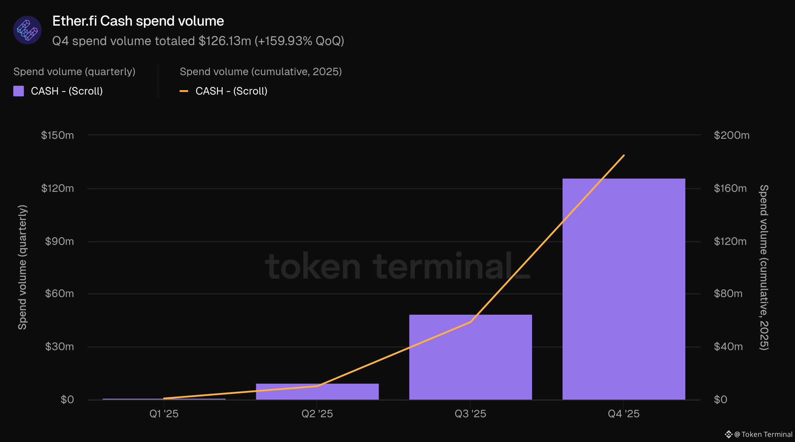 Ether.fi Cash spend volume: $126.13m (+159.93% QoQ)