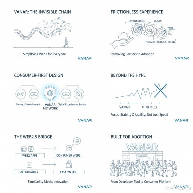 The way Vanar talks about itself makes it clear they’re not chasing the usual L1 bragging contest of who can print the biggest TPS number on a landing page. They’re trying to design a network that makes sense for consumer products—things like games, entertainment, digital experiences, and brand activations—where you can’t afford a clunky onboarding flow, unpredictable costs, or a user experience that constantly reminds people they’re using crypto. If you’ve ever watched a mainstream user bounce off Web3 because of fees, wallet confusion, or weird transaction timing, you can see why Vanar keeps leaning into “built from the ground up for adoption.” It’s basically an admission that the average L1 experience still feels like a developer tool, not a consumer platform.