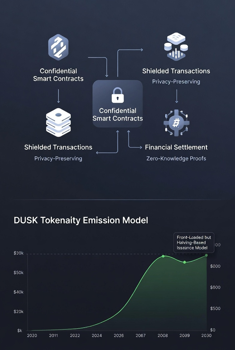 The DUSK token is not ornamental. It is used for staking, it underpins the consensus mechanism, and it is the unit in which fees are ultimately paid. Removing the token would require redesigning the system’s security and incentive model. In that narrow sense, the token is necessary. But necessity alone does not create durable value. A token can be essential to protocol mechanics and still fail to capture value if demand is driven primarily by emissions rather than usage.
