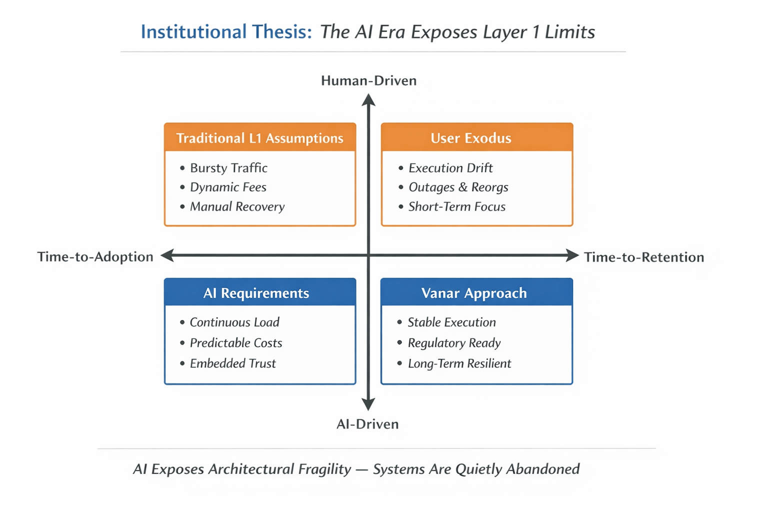 The AI era is not stressing blockchains because it is louder. It is stressing them because it is quieter. When systems stop being experimented with and start being depended on, architectural shortcuts surface. Retention becomes the truth serum. The next generation of Layer 1s will not win by moving faster, but by being the ones nobody has to think about once they are in production.