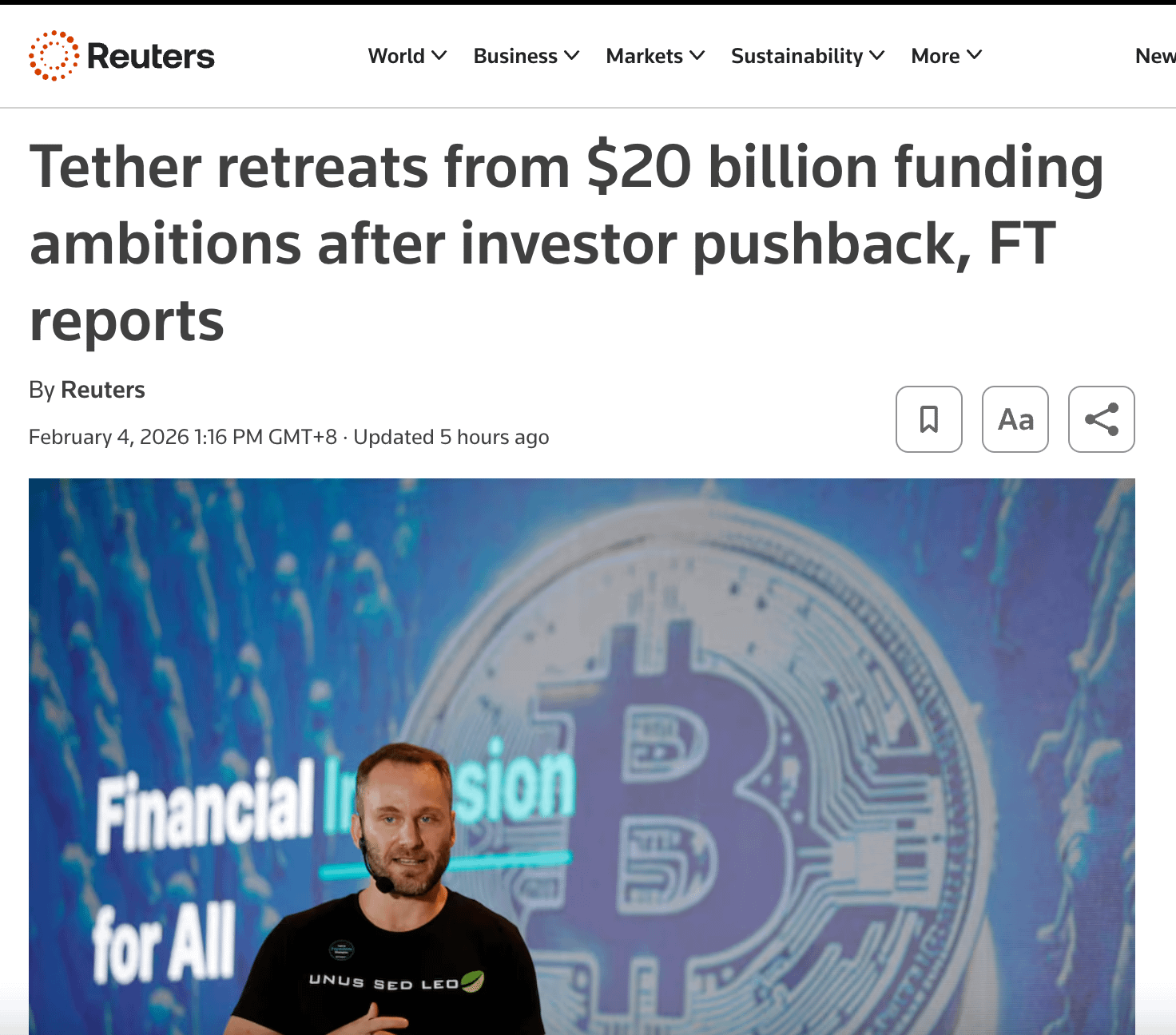 Aceasta este atât un avantaj (lichiditate mare, obiceiuri de utilizare puternice), cât și un risc (orice turbulență de reglementare/emitent se va transmite). Astăzi, raportul Reuters despre finanțarea și evaluarea Tether este, în esență, „emitentul stablecoin-urilor este supus unei examinări mai stricte”.