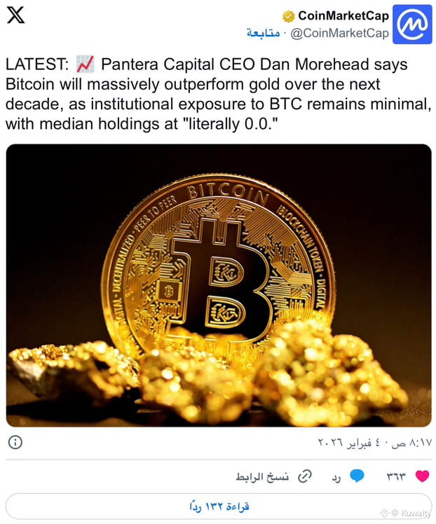 يتوقع مورهد أن ينمو اعتماد $BTC ببطء ولكن بثبات. وهو لا يركز على تحركات الأسعار قصيرة الأجل، بل على التحولات المؤسسية طويلة المدى.
