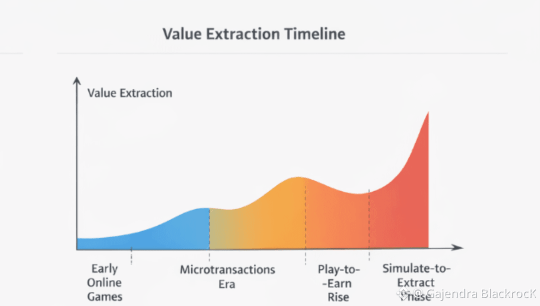 Another useful visual is a timeline of value extraction. Starting with early online games (fun-first, no extraction), moving to centralized microtransactions, then play-to-earn, and finally simulate-to-extract environments dominated by agents. Overlay where architectural interventions attempt to slow or redirect this curve. The timeline doesn’t promise reversal—it shows where pressure points exist.