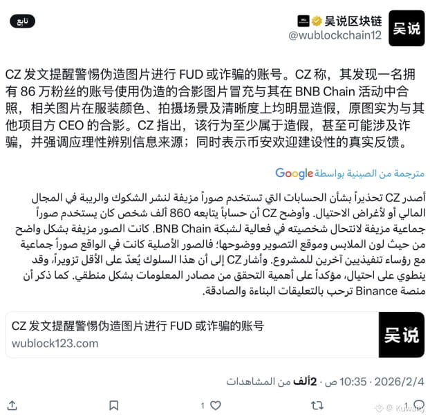تكشف هذه الواقعة عن مشكلة أوسع. فمع الذكاء الاصطناعي والأدوات البسيطة، أصبحت الصور المزيفة تبدو أكثر واقعية من السابق، ما يسهل تضليل الناس. وفي عالم العملات الرقمية، يمكن استخدام ذلك لنشر الخوف والشك وعدم اليقين (FUD) أو لبناء ثقة زائفة. وقال تشاو إن على القطاع توخي الحذر. وأضاف أن الانتقادات الحقيقية لا تزال مرحبًا بها لدى Binance وBNB Chain. فالروايات المزيفة تضر بالجميع. والدرس الأساسي حاليًا بسيط: تحقق من الصور والمصادر، ولا تثق بالمنشورات لمجرد أنها تبدو شائعة. في عالم العملات الرقمية، لم يعد ما تراه بالضرورة حقيقة.