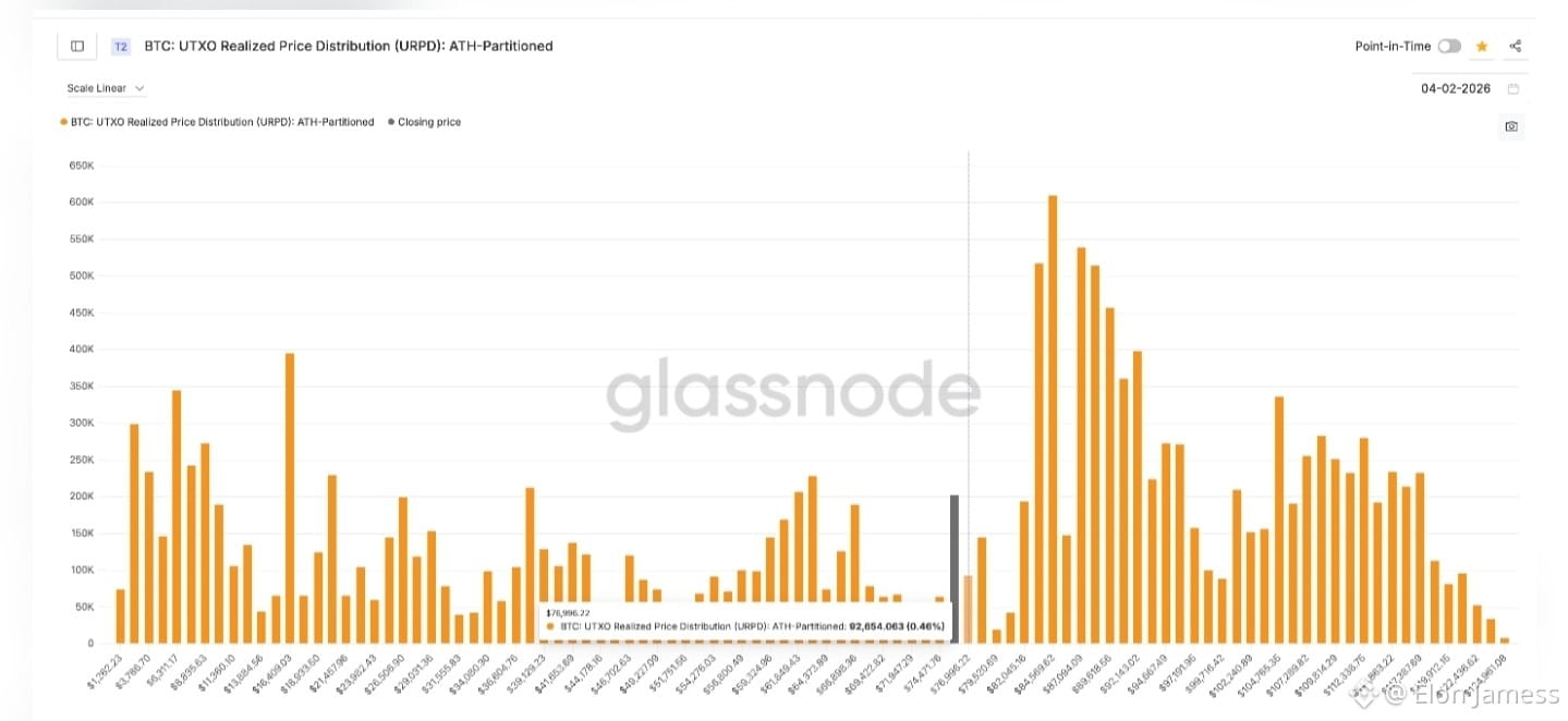 URPD data indicates that roughly 0.46% of Bitcoin’s total supply is clustered around $76,990. This creates a key supply zone where many holders are near their break-even point, which helps explain why the recent 5% bounce paused near $76,980.
