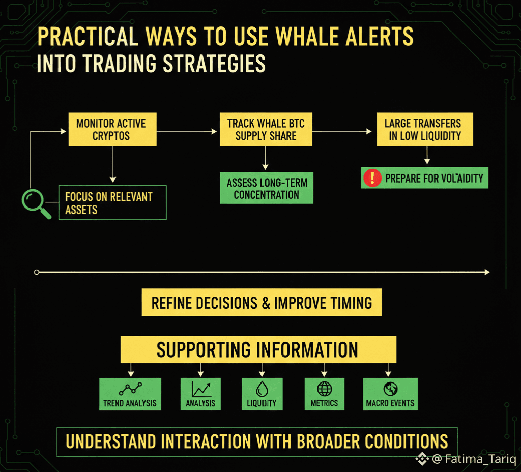 Whale alerts are best viewed as supporting information. Combined with trend analysis, liquidity metrics, and macro events, they help traders refine decisions and improve timing. The value lies in understanding how whale activity interacts with broader conditions, rather than following whales directly.