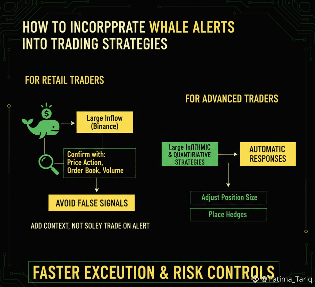 For retail traders, whale alerts provide context that supports better entry and exit decisions. For advanced traders, they can be integrated into systematic models and used to automate responses during volatile conditions. In both cases, the value lies in treating whale data as one layer of analysis rather than a complete strategy.By combining whale tracking with real-time monitoring, blockchain analytics, and market analysis, traders can anticipate potential volatility, manage risk more effectively, and make more informed decisions