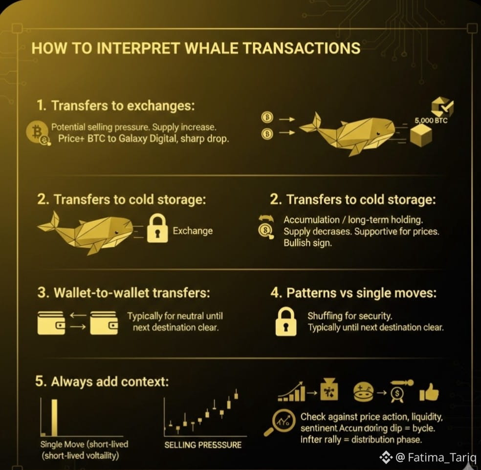 Large transactions are rarely random. Accumulation, when whales move funds into cold storage, often signals confidence and reduces supply on exchanges. Distribution, when whales transfer coins to exchanges, can increase supply and create selling pressure. For traders, tracking these shifts helps anticipate potential changes in market conditions and avoid decisions based only on short-term noise.
