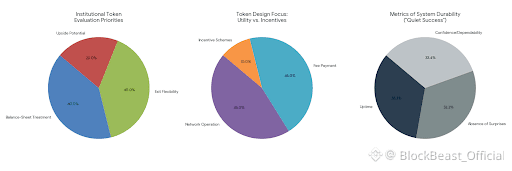 From an institutional perspective, token design is evaluated less for upside and more for balance-sheet treatment and exit flexibility. A token primarily focused on network operation and fee payment, without aggressive incentive schemes, is easier to model and justify internally. Predictable fee markets and conservative monetary policy often matter more than complex reward structures that obscure long-term costs.