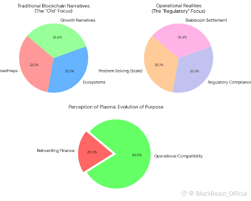When assessing a system like , it helps to step away from the usual language of roadmaps, ecosystems, and growth narratives. A more revealing question is simpler: what problem does this infrastructure solve for actors who already move money at scale, under regulatory regimes they cannot opt out of? Viewed from that angle, Plasma reads less like a bid to reinvent finance and more like an attempt to make blockchain compatible with the operational realities of stablecoin-based settlement.
