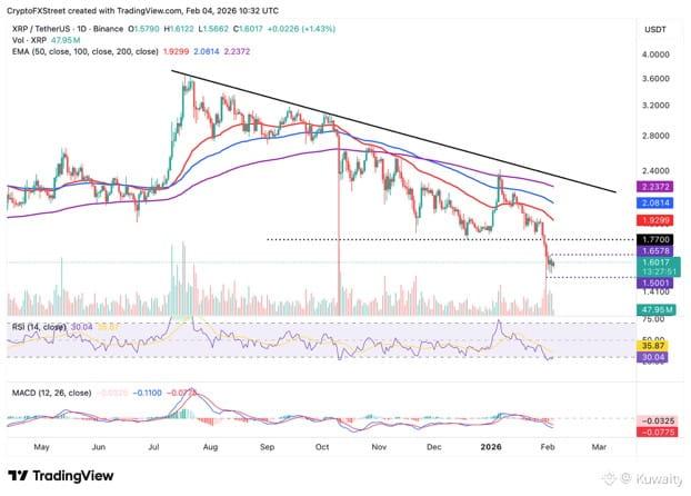 يتماسك XRP حول 1.60 دولار يوم الأربعاء حيث تحد المعنويات الضعيفة من الإمكانيات الصعودية.