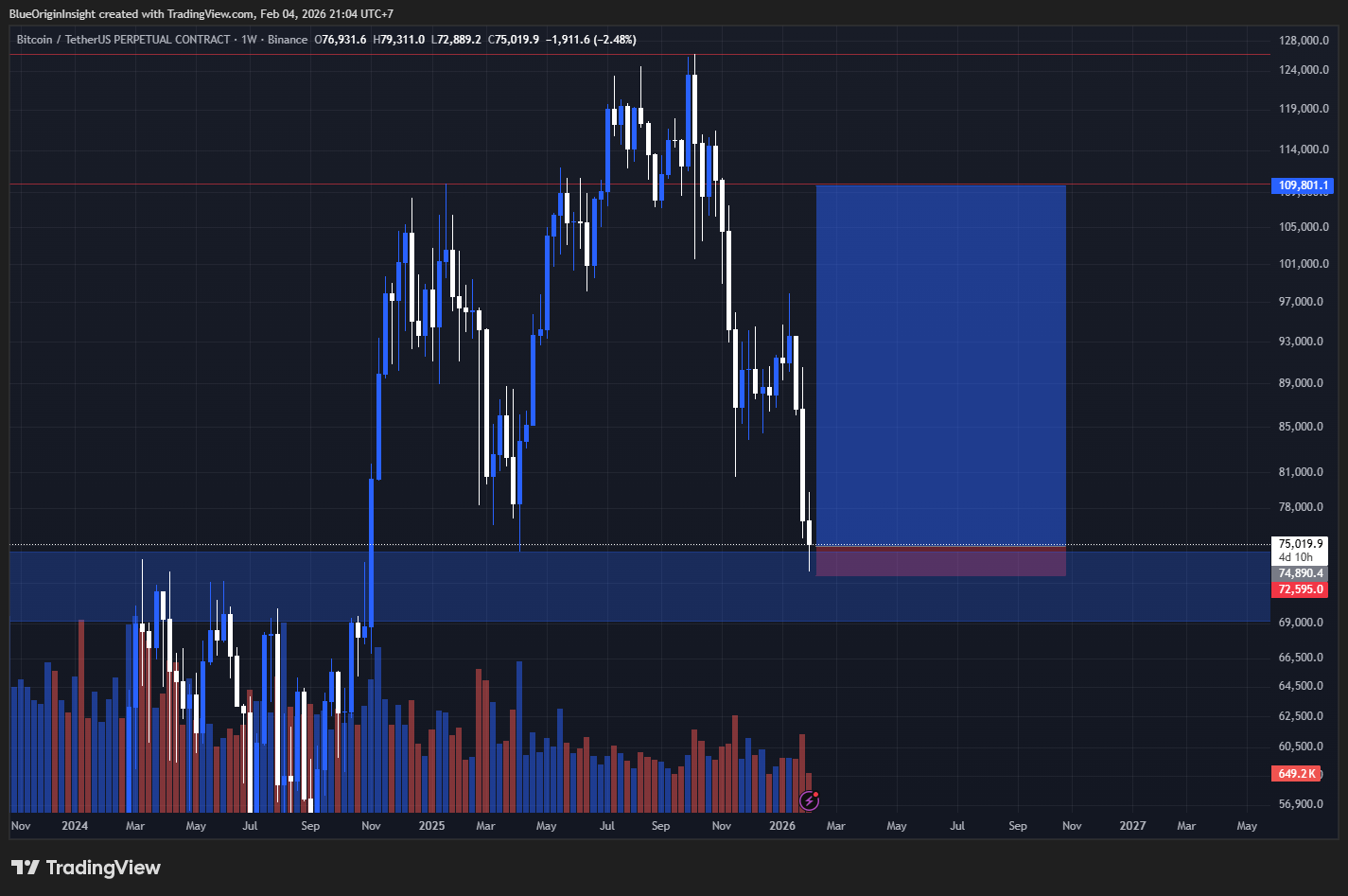 $BTC ține o zonă puternică de suport pe un interval de timp mai mare după corecția recentă, menținând o structură de piață optimistă pe graficele zilnice și săptămânale.