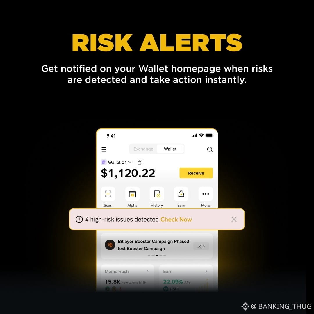 Automatically checks for potential risks and lets you manage security for Keyless and imported wallets in one hub.