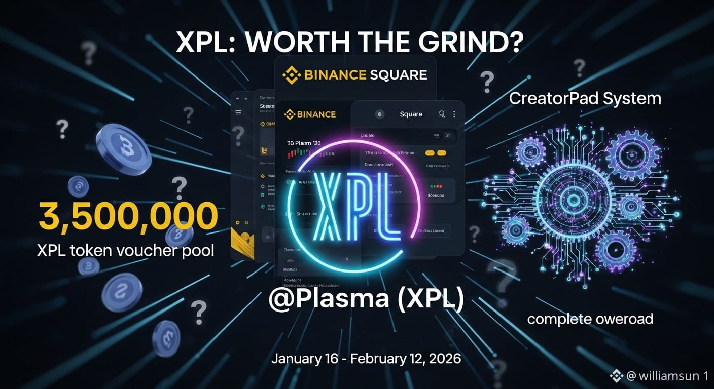 The @Plasma (XPL) campaign is currently live on Binance Square, running from January 16 to February 12, 2026. With a massive 3,500,000 XPL token voucher pool and a complete overhaul of the CreatorPad system, many are asking if it’s truly worth the grind.