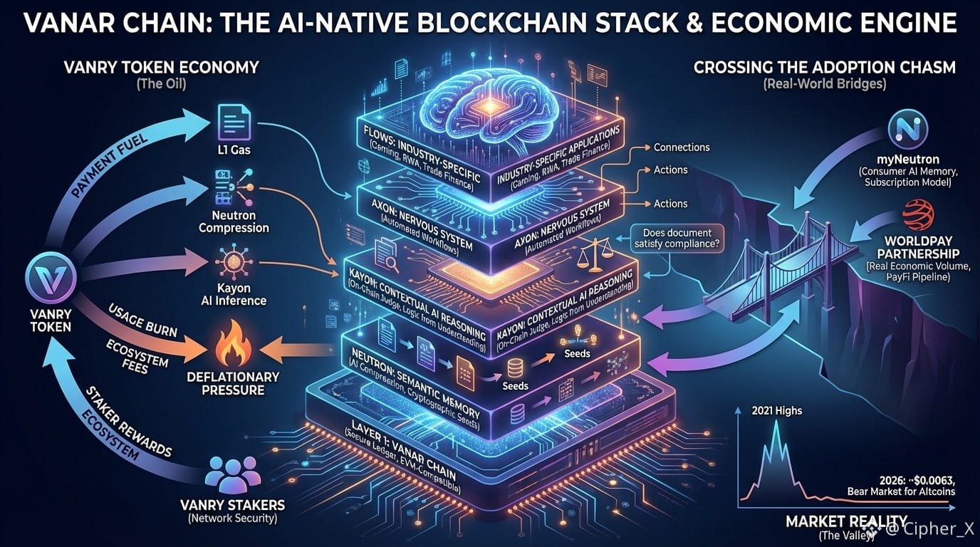 To mistake Vanar for just another "AI blockchain" is to miss the point entirely. The landscape is littered with projects that have bolted an AI chatbot to a wallet or promised vague machine-learning integrations. These are features, not foundations. Vanar is engaged in something far more foundational: it is re-architecting the blockchain stack itself to be intrinsically intelligent. Its thesis is not that AI will use blockchain, but that the blockchain itself must become an AI a verifiable, decentralized reasoning engine. This distinction is everything. In a market chasing the immediate dopamine hit of a pump, Vanar is engaged in the meticulous, thankless work of building the cortex for the next generation of the web. It is attempting to solve the Gordian knot of Web3: how do you move beyond simple, deterministic value transfers (send X token to Y address) and into the messy, nuanced world of real-world logic, compliance, and dynamic agreement? The answer it proposes is as elegant as it is audacious: you bake the ability to reason about data directly into the chain's protocol layers.