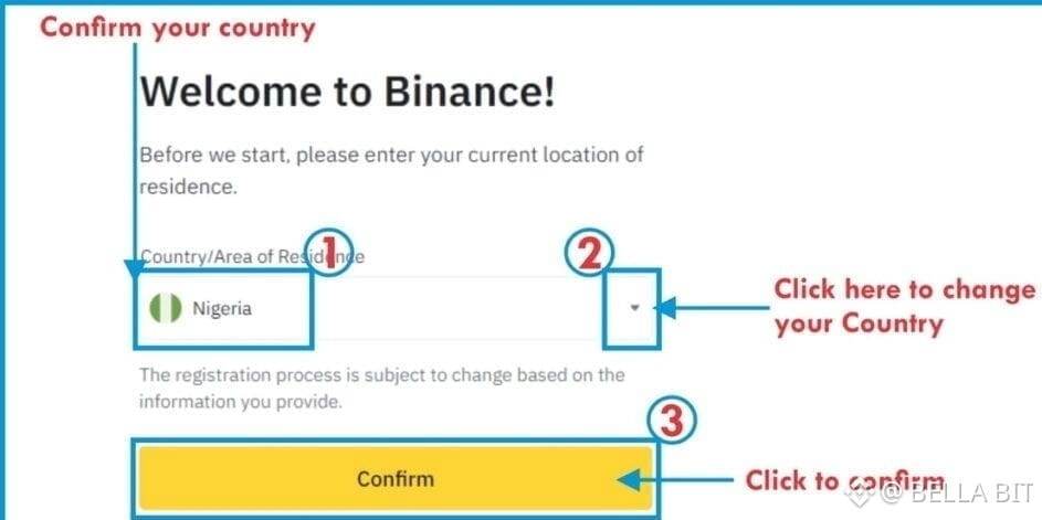 Select your country. Binance usually detects your country automatically based on your IP. Confirm it or select the correct one from the dropdown menu.