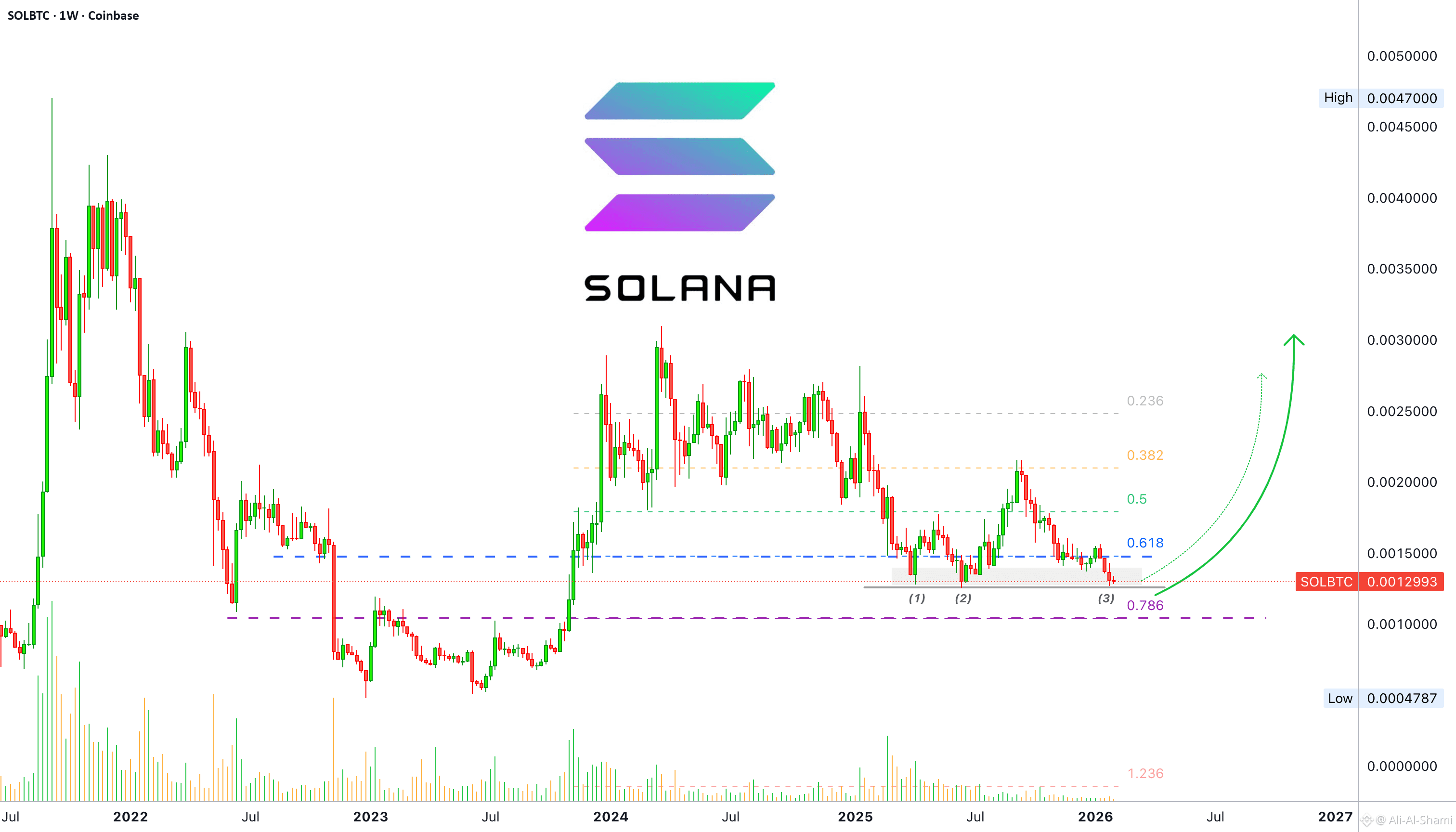 هنا نحن ننظر إلى سولانا مقابل بيتكوين وسأشرح لماذا هذه حالة مختلطة ولماذا أنا متفائل رغم ذلك.