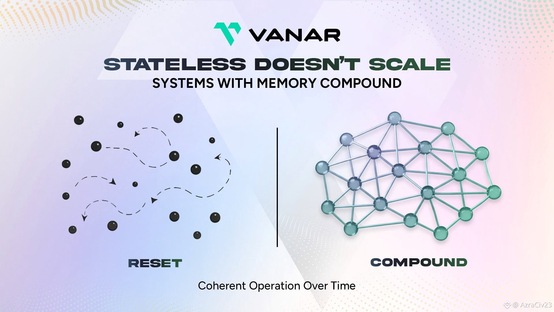 Stateful AI (what Vanar enables): Remembers past actions, outcomes, context, and capital allocations. AI agents can learn over time, make better decisions, and coordinate with other agents. Memory + reasoning are built into the chain, not bolted on.