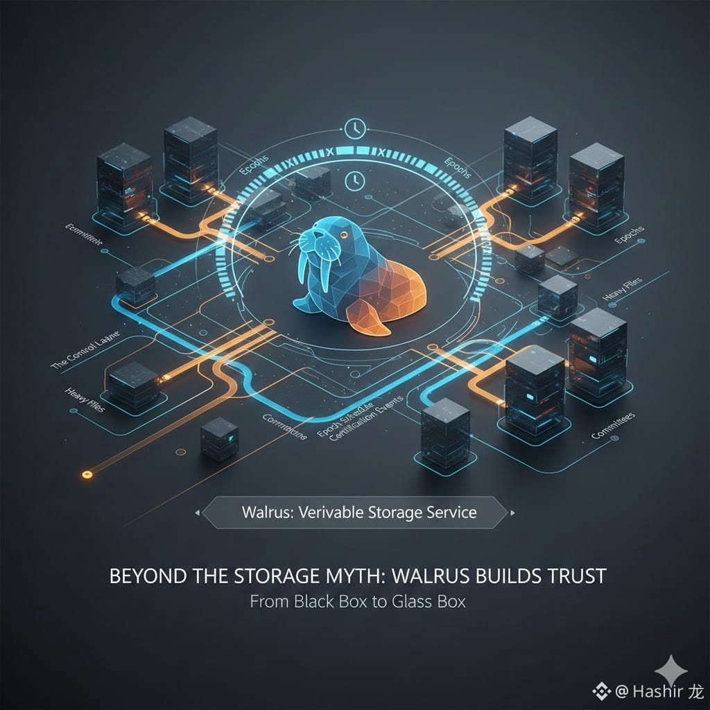 Enter Walrus. It represents a fundamental shift in perspective. Walrus isn’t just storage; it’s a verifiable storage service with a built-in clock and a clear chain of custody. It trades ambiguous promises for concrete states, transforming raw storage into programmable infrastructure you can actually build upon.