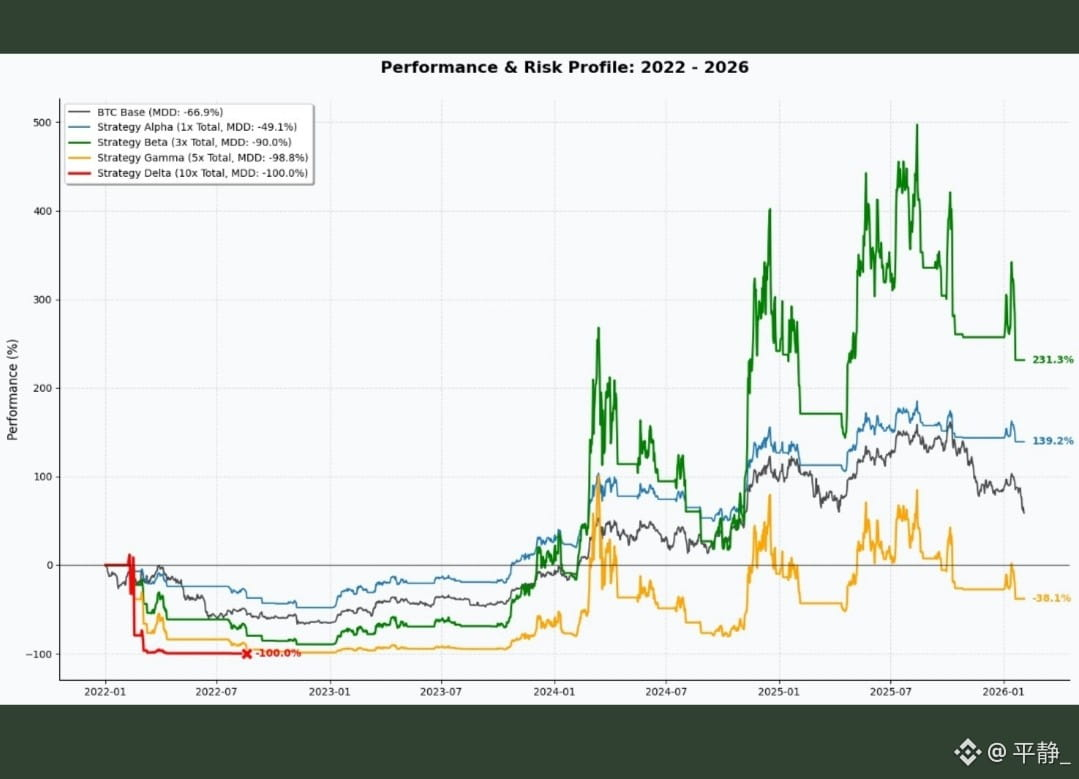 2.有大聪明开始冒想法了——“如果我用高杠杆,并潜心多年优化我的操盘策略,修炼奇淫技巧,想办法在最高(低)点离场,不就可以了?”。