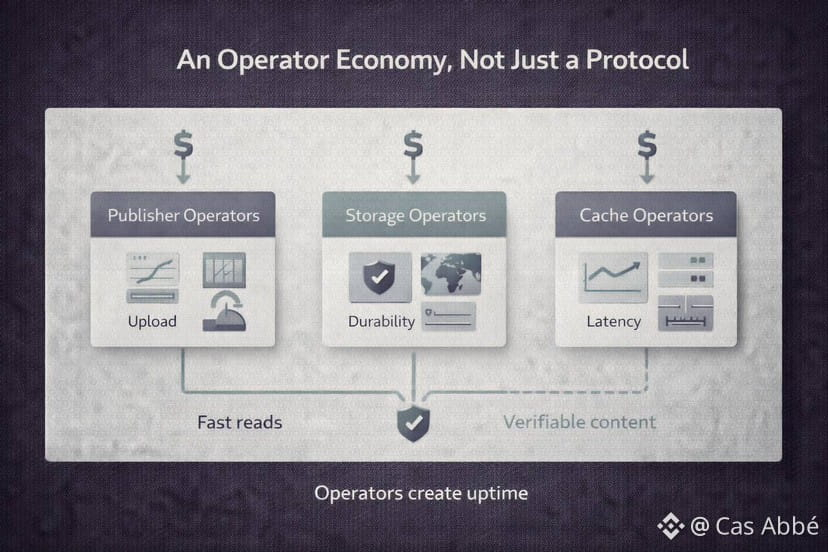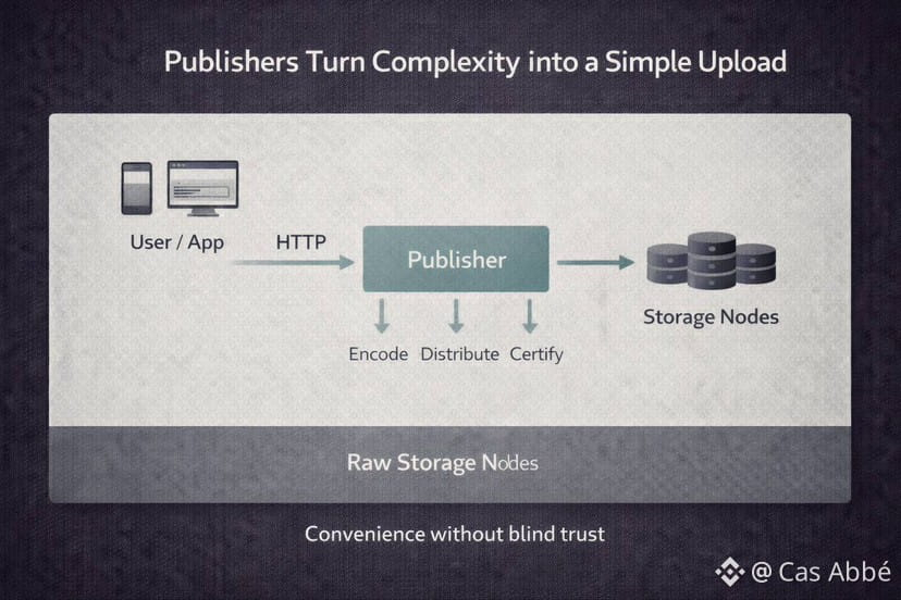 What is more important at present is that Walrus does not require every user to interact with dozens of storage nodes, to encode, or to work with certificates. It relies on an operator market of publishers, aggregation, caches, such that apps can have a Web2 level of ease, but Web3 level verification. That is an adult manner of designing infrastructure.