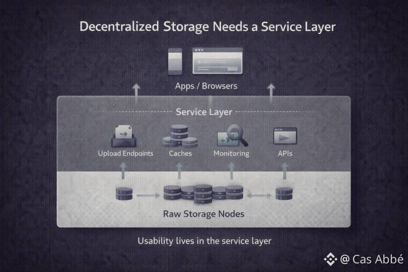 The image of a swarm of nodes and a token fee appear in the minds of people when they consider the concept of decentralized storage. That image isn’t complete. Walrus is silently making something that more closely resembles the real internet: a foundation network and a permissionless layer of service providers to enable it to be used by normal applications.