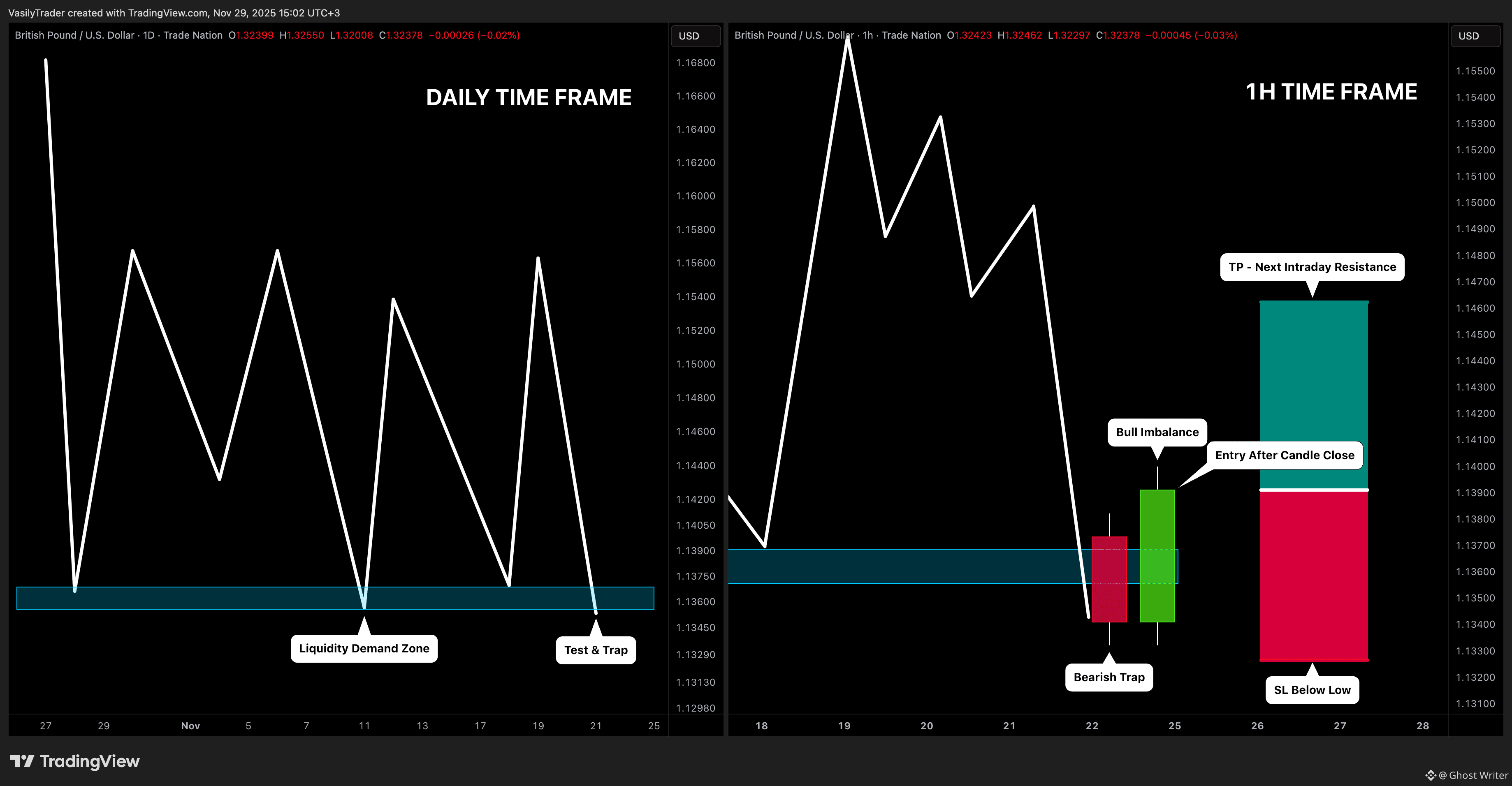 It is based on a combination of liquidity zones, traps, and imbalances.
