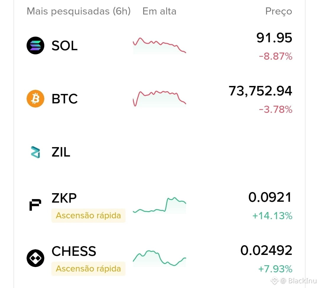 Enquanto o SOL e o BTC apresentam correções momentâneas, altas expressivas como a do ZIL (+14,13%) e a ascensão rápida do ZKP (+7,93%) chamam a atenção.
