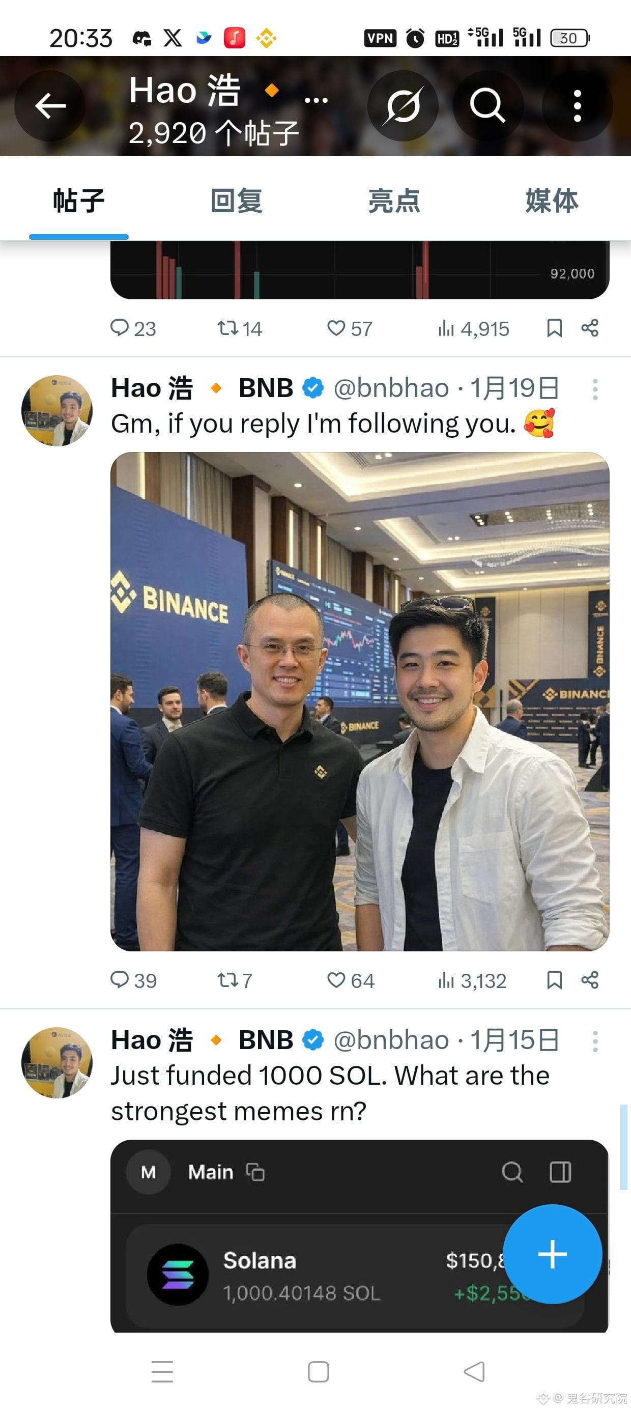 你是大表哥铁粉啊一晚上全成bnb了,再看内容前面ps合影,后面就是卸载币安。