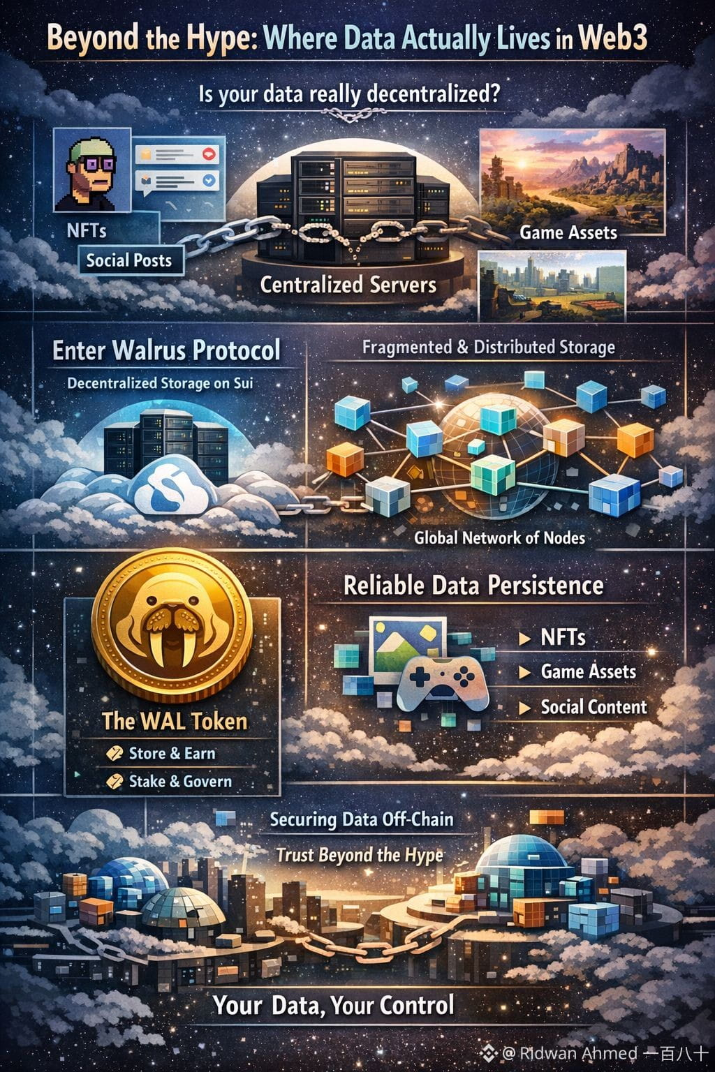 While cryptocurrency markets fixate on prices and speculation, a fundamental question often goes unasked: where does the data actually reside? NFTs, social posts, game assets—this critical information rarely lives on-chain. This creates a silent contradiction: applications boasting decentralization often rely on centralized servers in the background. If those servers fail, the illusion of ownership shatters.