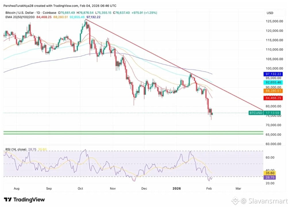 Сегодня цена $BTC торгуется около 76 637💲после тестирования уровня 75 355💲, который является самым низким ценой с конца 2024 года. Этот скачок произошёл на фоне того, что Майкл Берри ( Michael Burry ), инвестор, известный тем, что открыл шорты на рынке жилья в 2008 году, предупреждает, что корпоративные держатели биткоина рискуют смертельной спиралью если цены упадут ещё на 10%.