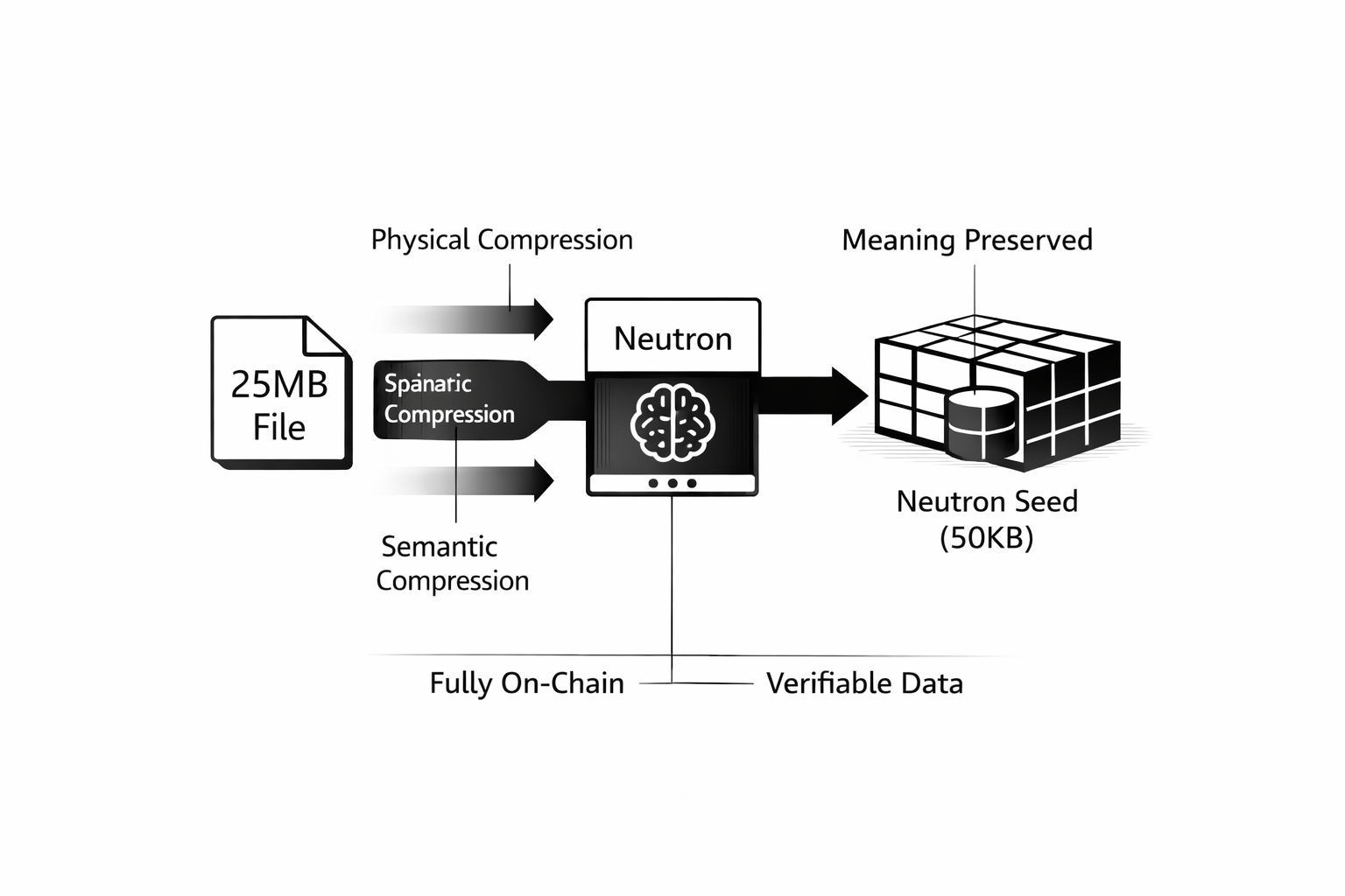 Vanar Chain approaches the problem from a different angle. Instead of treating storage as an external concern, it introduces a native data layer designed to compress and authenticate files directly on the blockchain. At the core of this system is Neutron, an AI-native compression and verification layer. Neutron reduces large files—such as a 25 MB document—into compact, cryptographically verifiable representations known as Neutron Seeds. These seeds can be stored fully on-chain, without relying on external hosts.