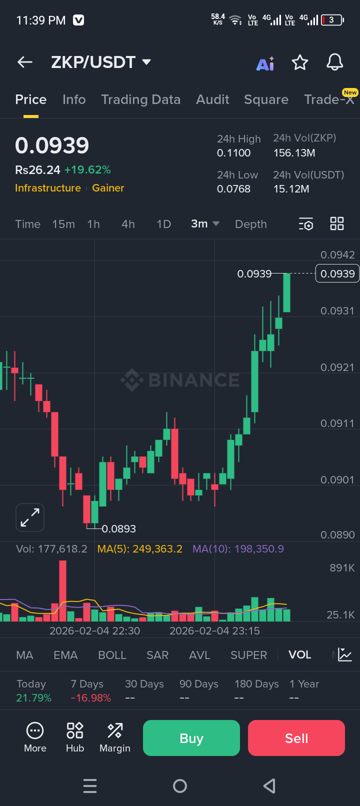 $ZKP is currently trading near **0.0939 USDT** after gaining almost **+20% in 24 hours**, showing strong short-term bullish momentum and renewed market interest.