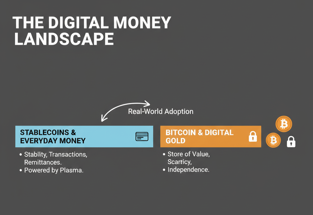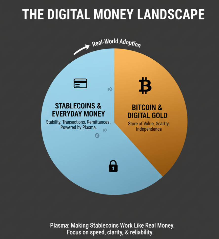 The conversation around digital money is getting louder every day, and while Bitcoin still dominates headlines, I think the more interesting shift is happening with stablecoins and the infrastructure behind them. Bitcoin did something revolutionary by proving that money could exist without banks, but it was never designed to feel calm or predictable. Its price moves, sometimes wildly and that makes it powerful as an asset but awkward as everyday money. From my point of view, Plasma steps in right where that gap starts to matter.