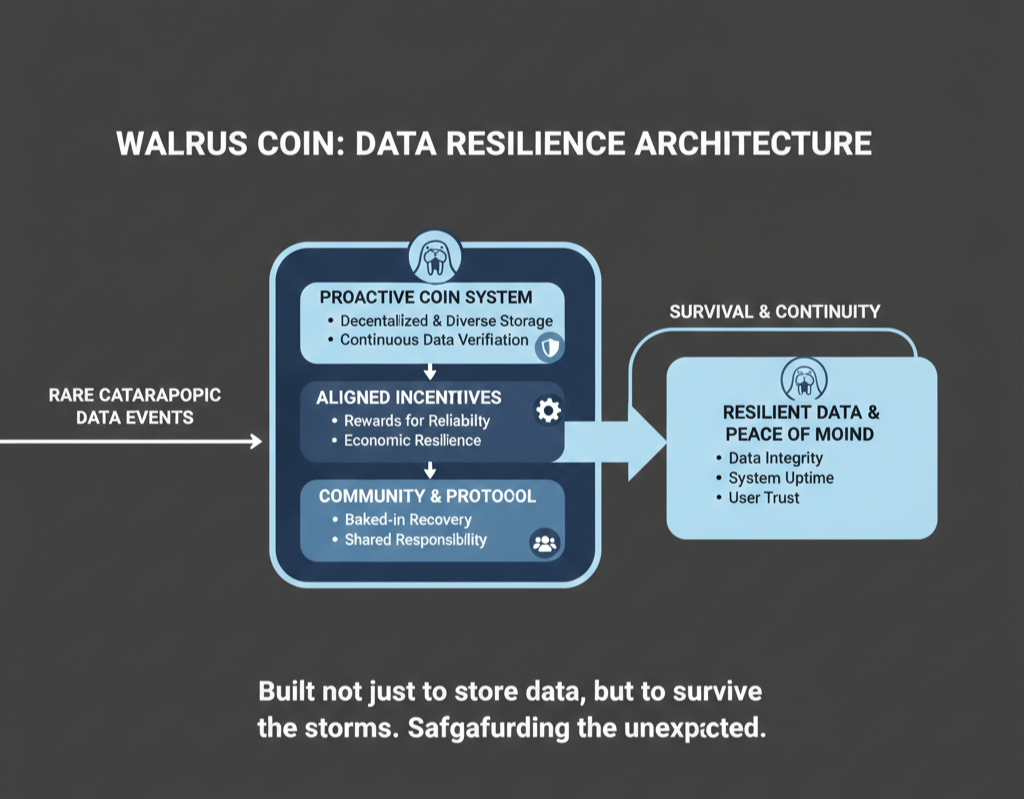 In the end, preparing for rare but catastrophic events isn’t just about storage. It’s about thinking ahead, designing for both machines and people and creating a system that can adapt when the unexpected happens. From my perspective, Walrus Coin nails this balance. It’s resilient without being wasteful, reliable without being rigid and designed with a long-term view that most networks lack. To me, that combination makes Walrus Coin feel less like a storage solution and more like a safeguard, one that’s ready for whatever comes next.
