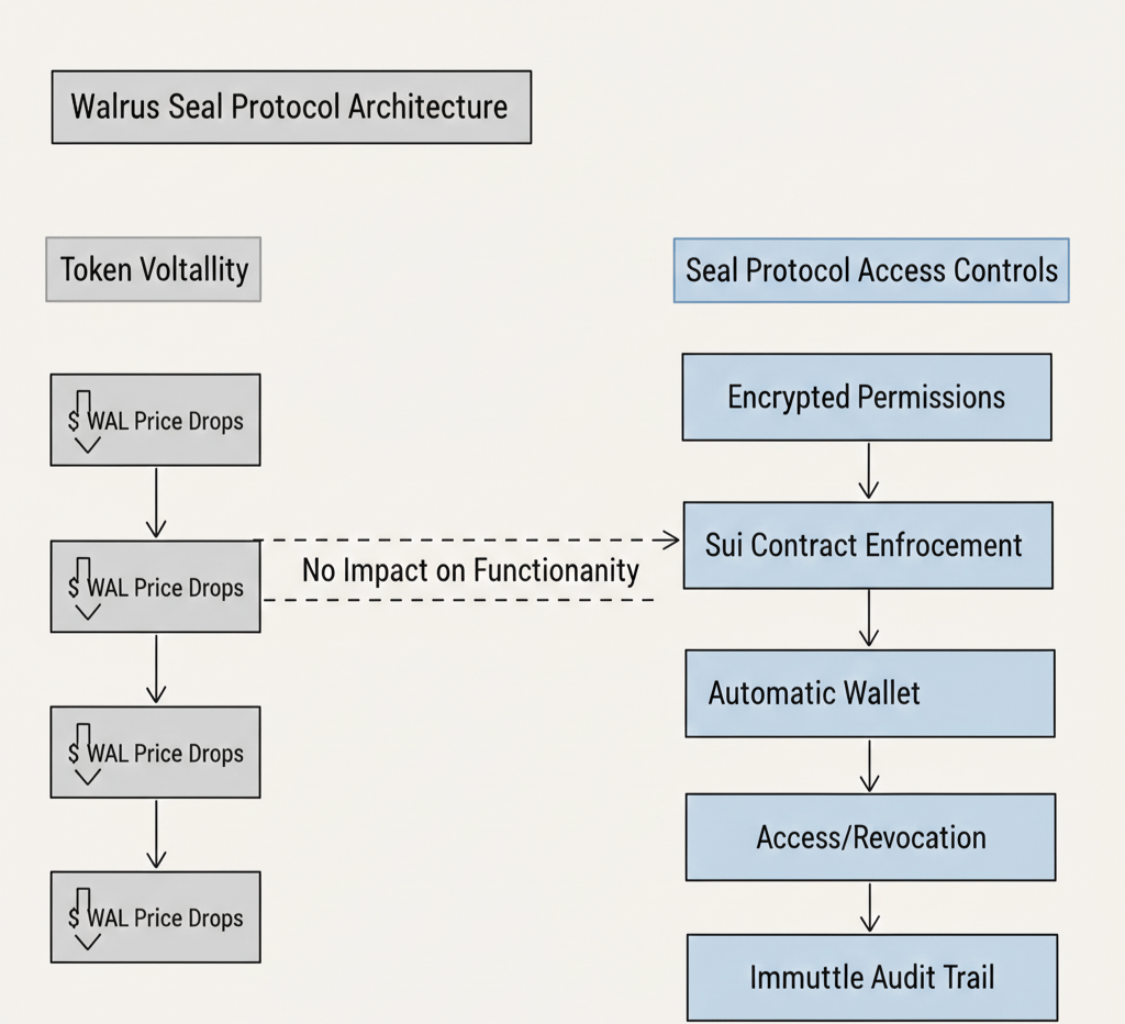 They told me the critical part is reliability. When WAL crashed from $0.16 to $0.089, their access controls kept working perfectly. Buyers got access. Sellers lost access. The token price didn't matter because Seal Protocol runs on Sui's consensus, not on WAL value. The infrastructure layer is completely separated from token economics for actual functionality.
