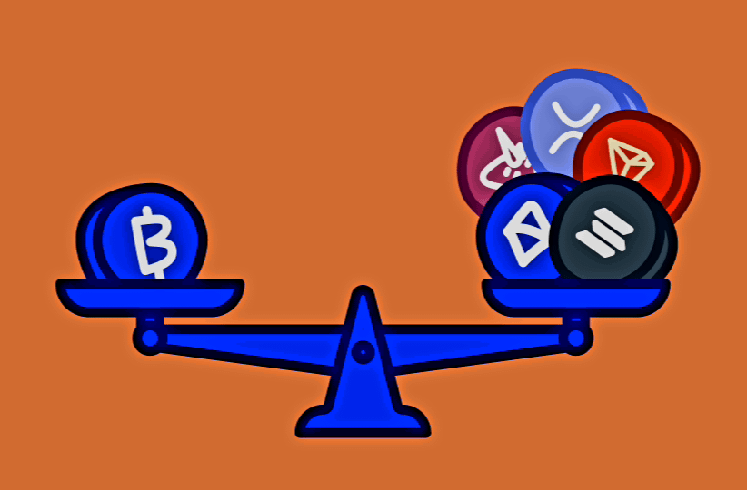 In 2021, Bitcoin topped at $69,000 and then corrected about 50% to about $30,000. Dominance fell from 73% to about 40% ,That triggered DeFi and NFT summer.