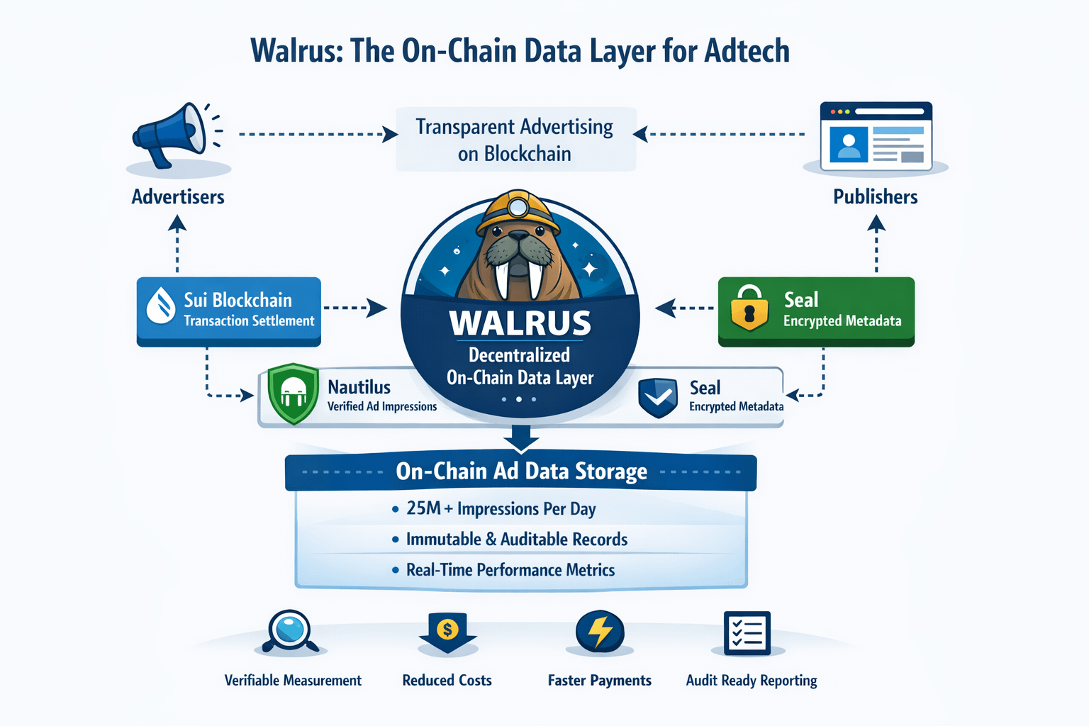 Cost-Effective Infrastructure: Walrus is designed to be more cost-efficient and scalable than legacy centralized data storage systems, helping ensure that the underlying data layer doesn’t become a bottleneck even as ad volumes grow.