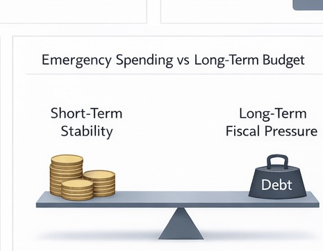 This pattern has long term implications for fiscal pressure. Emergency spending does not appear dramatic on its own, yet repeated reliance on it slowly reshapes the debt trajectory. Each intervention reinforces a system where deadlines are resolved through expansion rather than adjustment. Debt accumulation becomes less about excess in any single year and more about the normalization of short-term fixes. Markets understand this distinction. The concern is not immediate solvency, but the gradual narrowing of policy flexibility.
