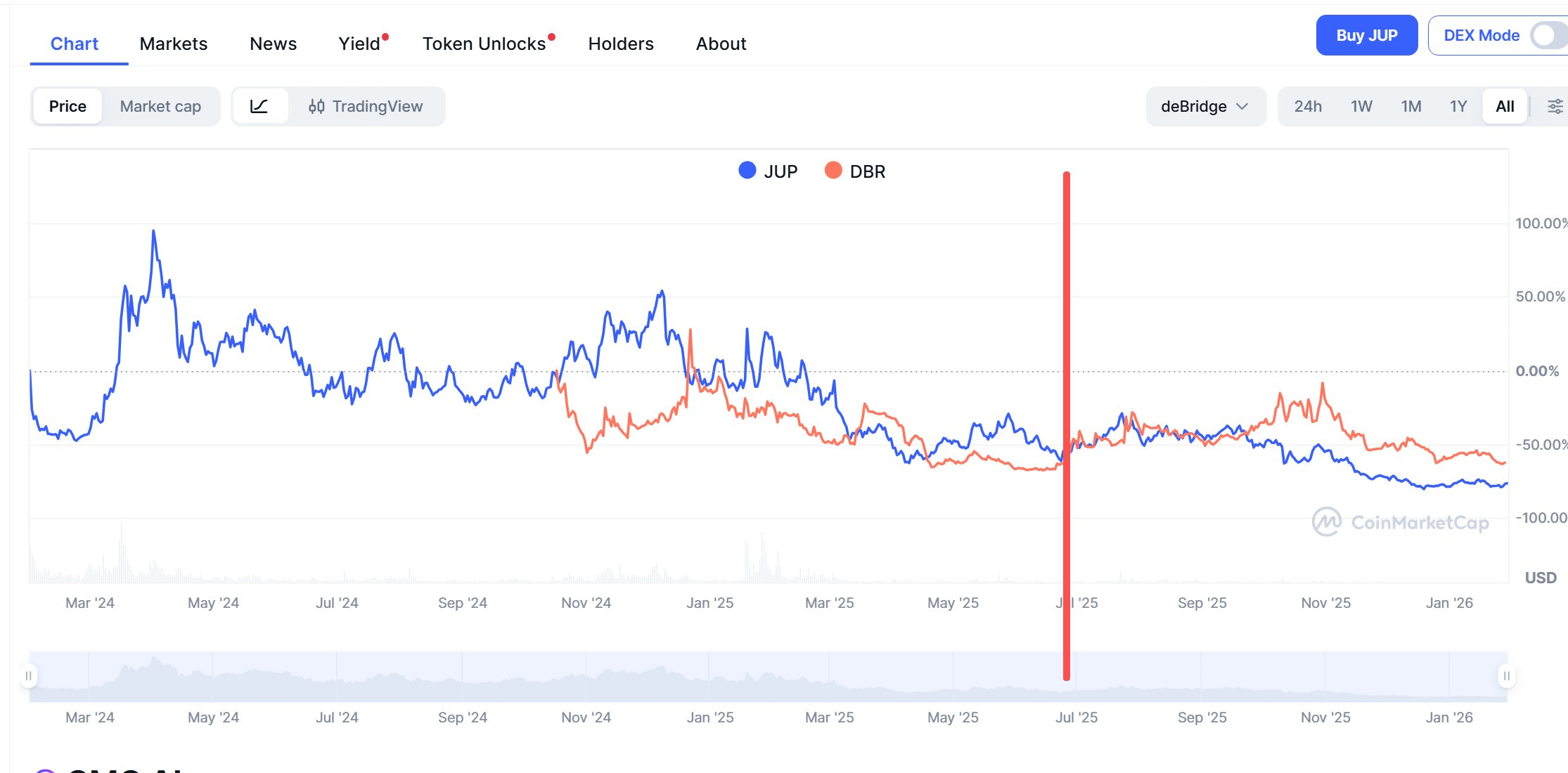 2025年1月以来,项目方开始回购 #JUP ,但是仍然未能阻止币价一路向下。