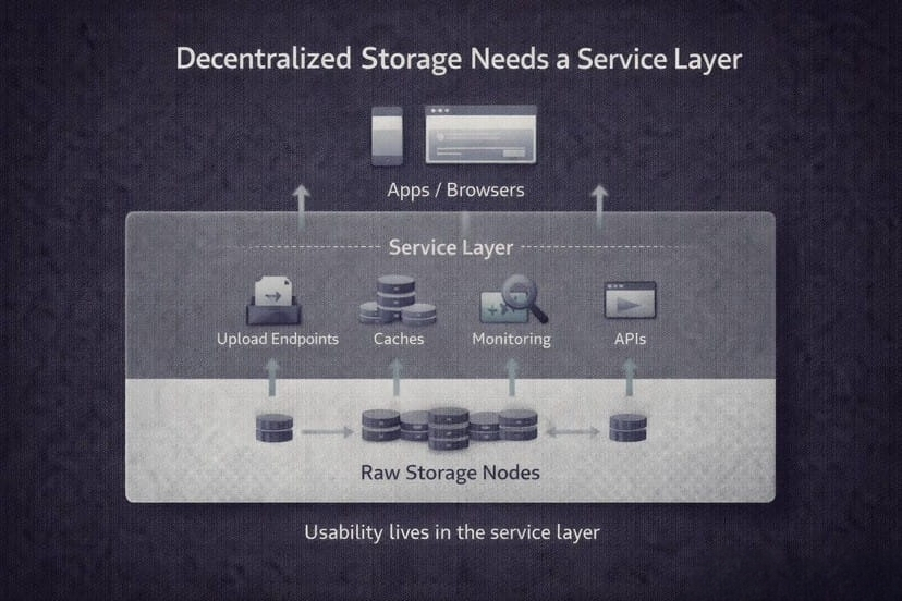 Reading from decentralized storage can be awkward even when it is cheap. Someone still has to collect enough pieces, rebuild the data, and serve it in a normal way to applications.