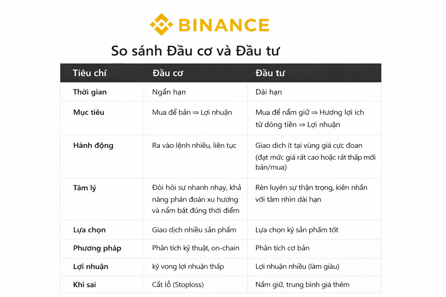 Trong tài chính nói chung và đặc biệt là thị trường crypto nói riêng, hai khái niệm đầu tư và đầu cơ thường xuyên được nhắc đến. Tuy cùng có mục tiêu sinh lời, nhưng cách tiếp cận, mức độ rủi ro và tầm nhìn của chúng lại hoàn toàn khác biệt. Nhiều người mới tham gia Crypto dễ nhầm lẫn hai khái niệm này, dẫn đến chiến lược sai lầm và rủi ro không đáng có.